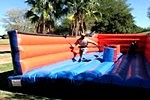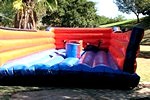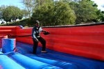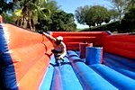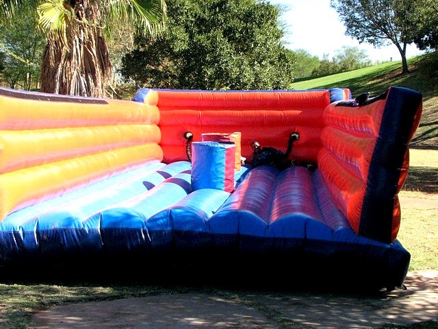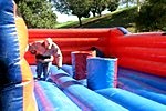 An inflatable obstical where the participants see who can place their Velcro