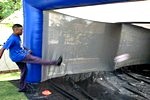 Laduma Shoot a Goal An inflatable tunnel is used, with targets placed at the end of the tunnel. Participants have to try and ick a soccer ball through the targets placed. Fun for all who can kick